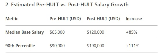 Median Base Salary (US-Employed HULT Alumni): $135,000 USD